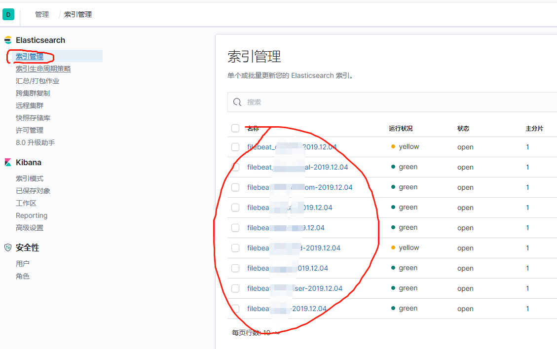 点击设置 --- Elasticsearch 的 Index management 可以查看 elk 生成的所有索引 (设置,Elasticsearch ,管理)