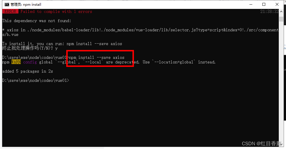 这里报错的【npm WARN config global `--global`, `--local` are deprecated. Use `--location=global` instead.】,您可以使用 –location=global Command 而不是 global –global,–local 已被弃用。