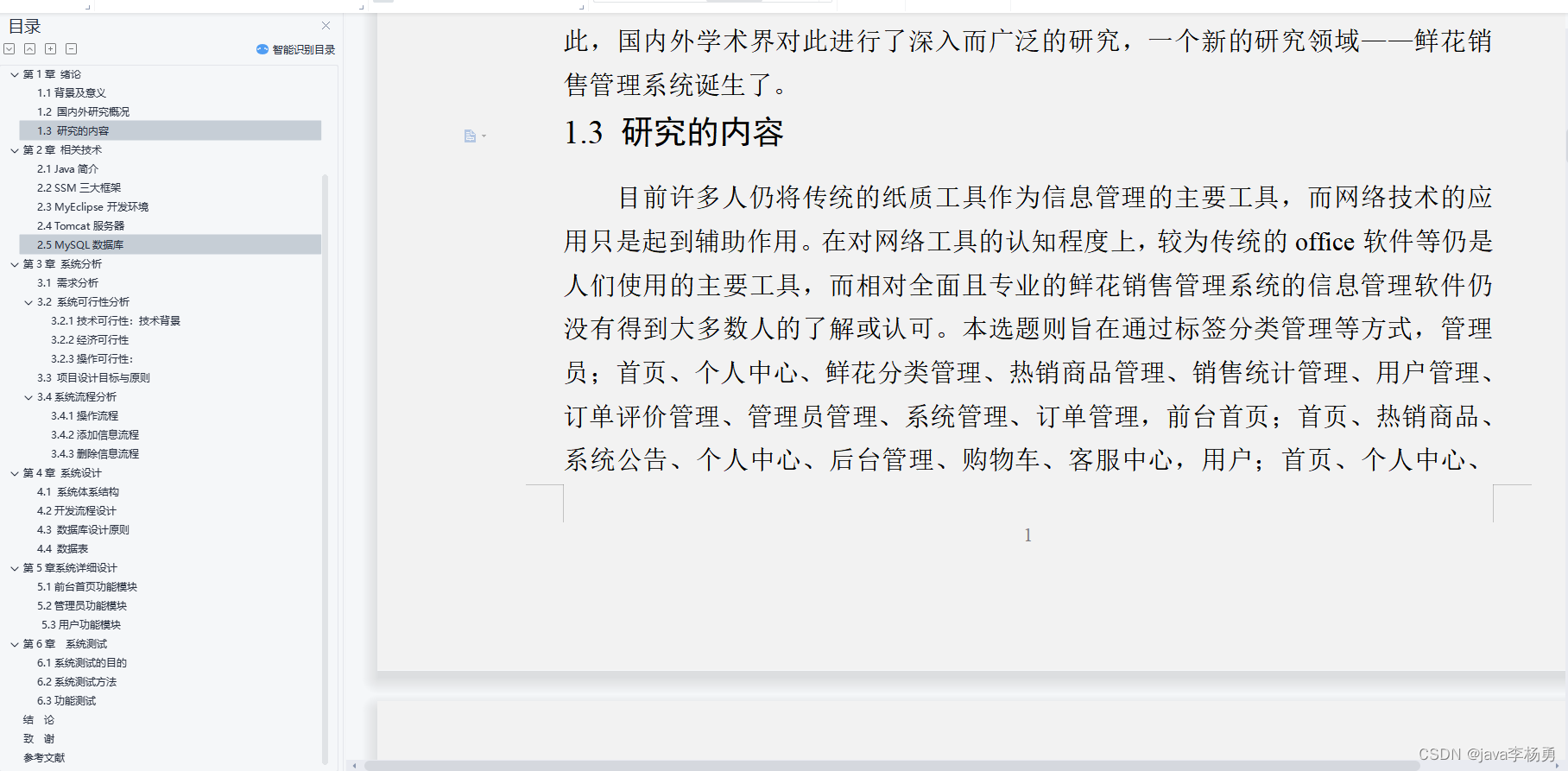 随着科学技术的飞速发展,社会的方方面面、各行各业都在努力与现代的先进技术接轨,通过科技手段来提高自身的优势,鲜花销售管理系统当然也不能排除在外。鲜花销售管理系统是以实际运用为开发背景,运用软件工程开发方法,采用SSM技术构建的一个管理系统。整个开发过程首先对软件系统进行需求分析,得出系统的主要功能。接着对系统进行总体设计和详细设计。总体设计主要包括系统总体结构设计、系统数据结构设计、系统功能设计和系统安全设计等;详细设计主要包括模块实现的关键代码,系统数据库访问和主要功能模块的具体实现等。最后对系统进行功能测试,并对测试结果进行分析总结,及时改进系统中存在的不足,为以后的系统维护提供了方便,也为今后开发类似系统提供了借鉴和帮助。本鲜花销售管理系统采用的数据库是Mysql,使用SSM框架开发。在设计过程中,充分保证了系统代码的良好可读性、实用性、易扩展性、通用性、便于后期维护、操作方便以及页面简洁等特点。