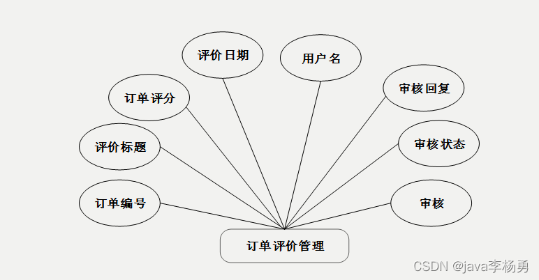 订单评价管理:订单评价管理:管理员通过列表可以获取订单编号、评价标题、订单评分、评价日期、用户名、手机、审核回复、审核状态、审核等信息,并进行详情、删除、修改操作如图所示