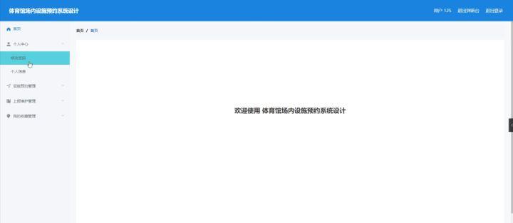 用户登录进入体育馆场内设施预约系统可以查看首页、个人中心、设施预约管理、上报维护管理、我的收藏管理等内容,如图5-14所示。