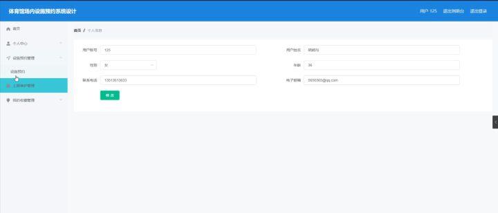个人中心,在个人中心页面通过填写用户账号、用户姓名、性别、年龄、联系电话、电子邮箱等信息进行修改,如图5-15所示。
