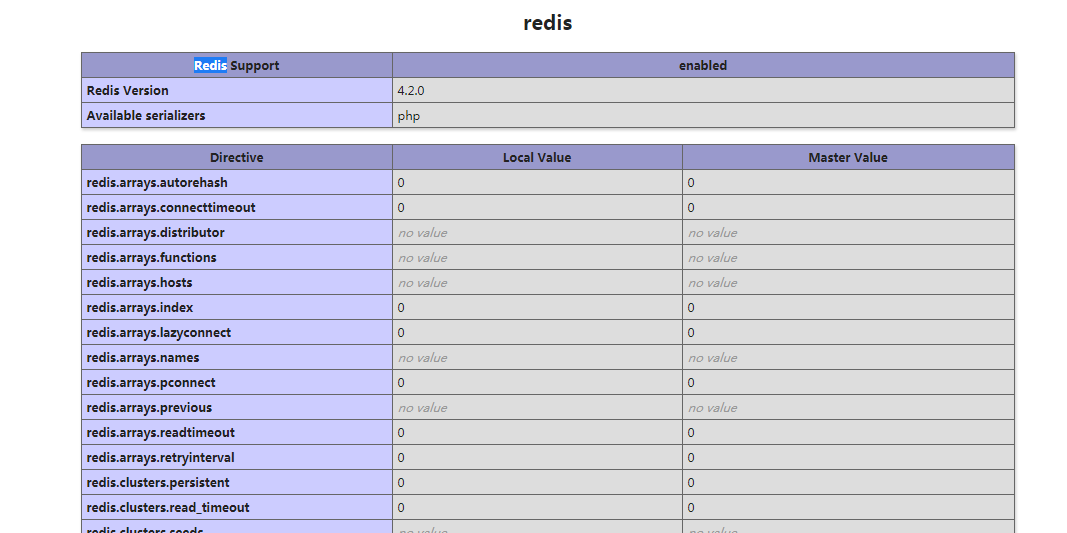 重启服务器,phpinfo()中有显示一下信息就证明redis已经安装成功了