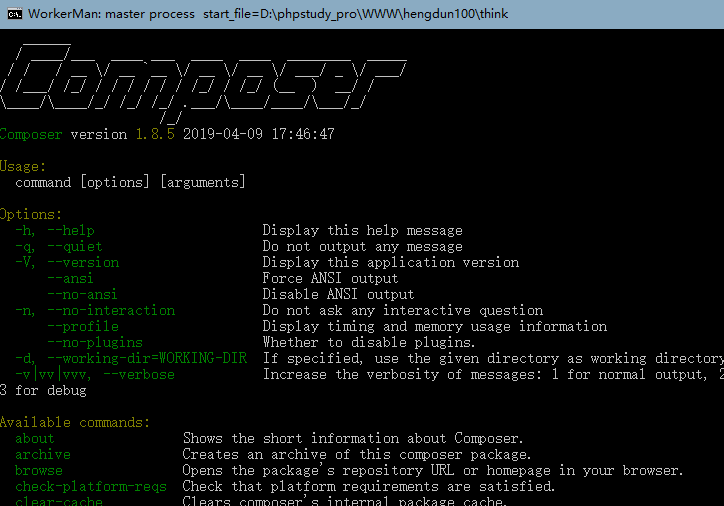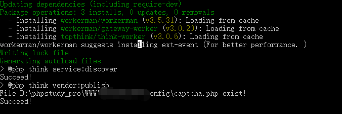 D:\phpstudy_pro\WWW\XXX>composer require topthink/think-worker
