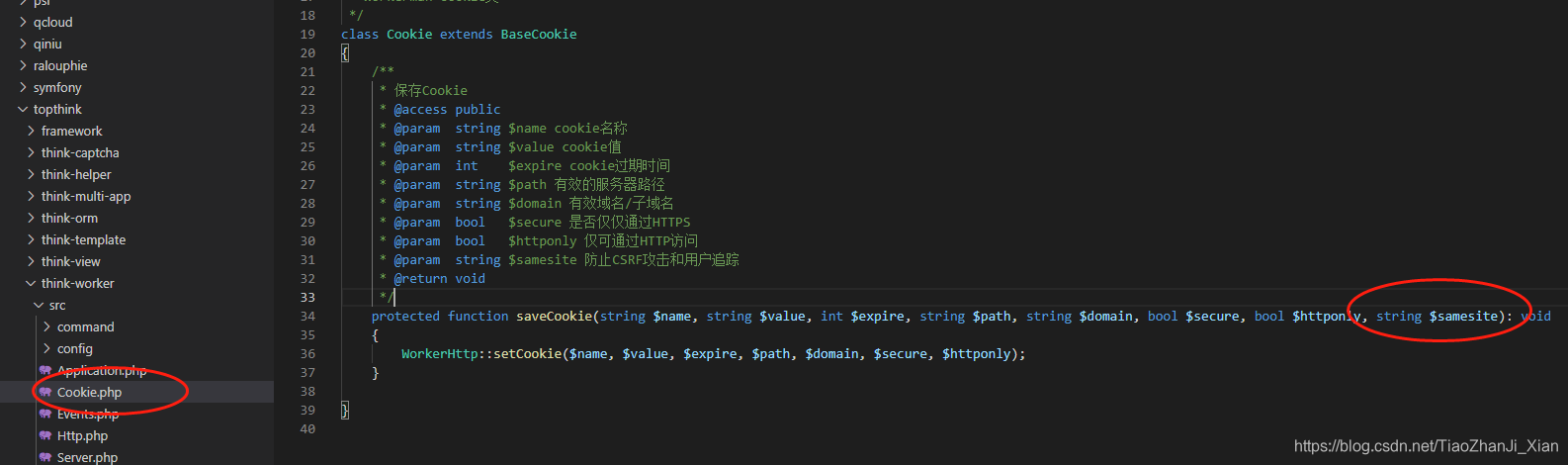 Too few arguments to function think\worker\Cookie::saveCookie(), 7 passed in D:\phpstudy_pro\WWW\XXX\vendor\topthink\framework\src\think\Cookie.php on line 186 and exactly 8 expected