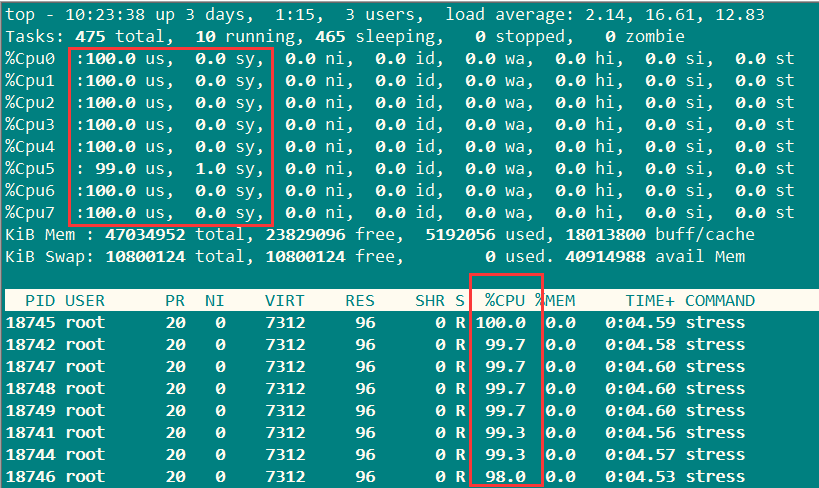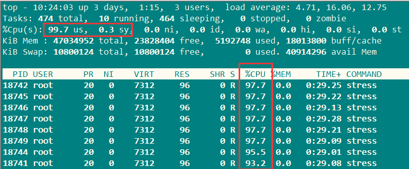 [root@docker35 ~]# stress --cpu 8 --timeout 600