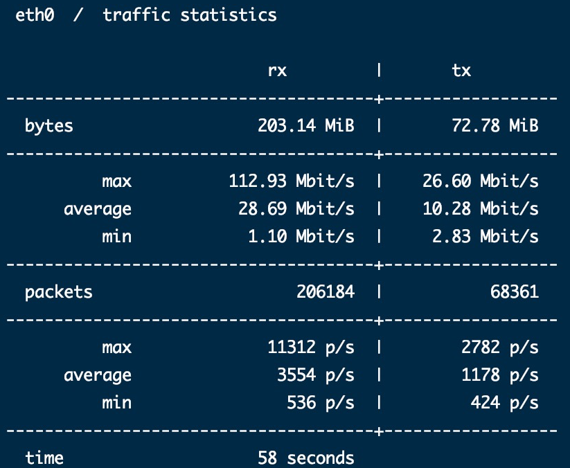 这些工具使用不同的机制来制作流量报告。nload等一些工具可以读取"proc/net/dev"文件,以获得流量统计信息;而一些工具使用pcap库来捕获所有数据包,然后计算总数据量,从而估计流量负载。