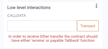 可以在Remix中自行尝试一下,创建一个没有receive或payable fallback的合约,并向其中发送一些以太币。点击**Transact(交易)**后,你应该会看到一条类似以下的消息。
