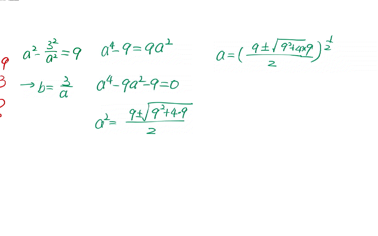 为了求 a的平方+b的平方, 将已知的 (a平方减b平方)进行平方, 可以获得a的四次方,减去2倍的a方b方,加上b的四次方。 根据已知条件,它等于9的平方。 将方程左右同时加上4bz的a方b方, 左边得到了a方加b方的平方项。 右边可以计算出等于117。