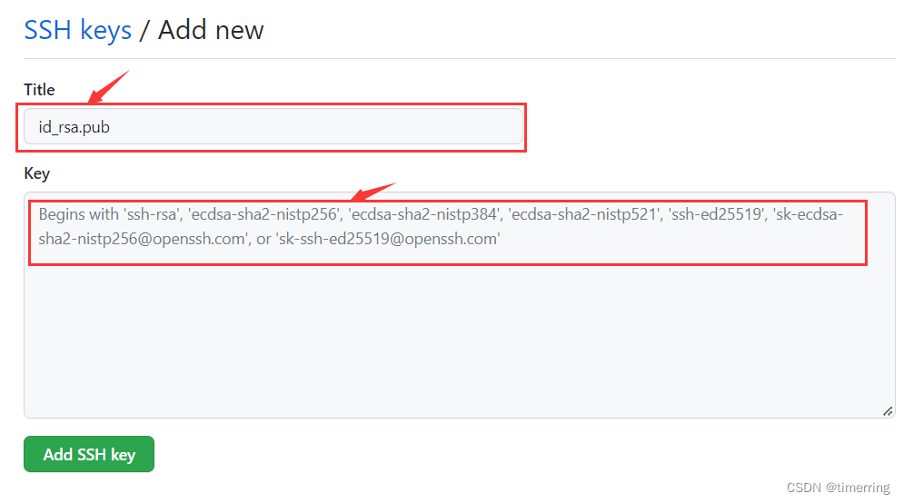 3.Title自定义即可,Key中粘贴刚刚复制的字符串公钥。