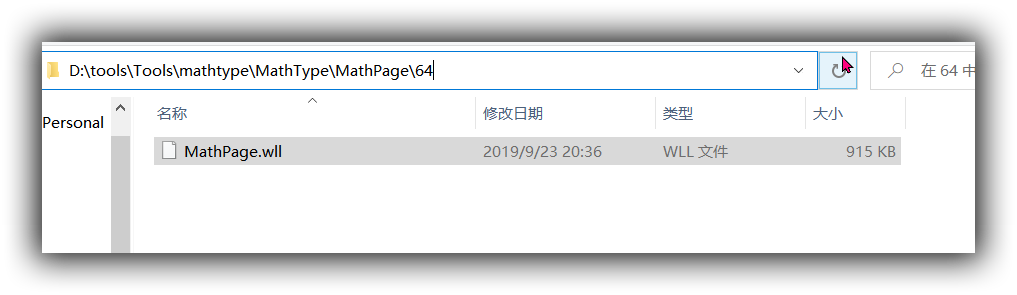 解决方案:首先在 MathType 安装目录下 “MathType\MathPage\64” 找到 MathPage.wll 文件,如下图所示: