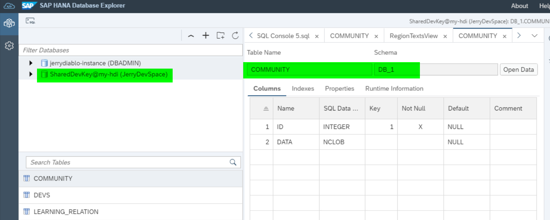 例如我们更换使用 Node.js 访问的数据库表名称为 DB1.COMMUNITY: