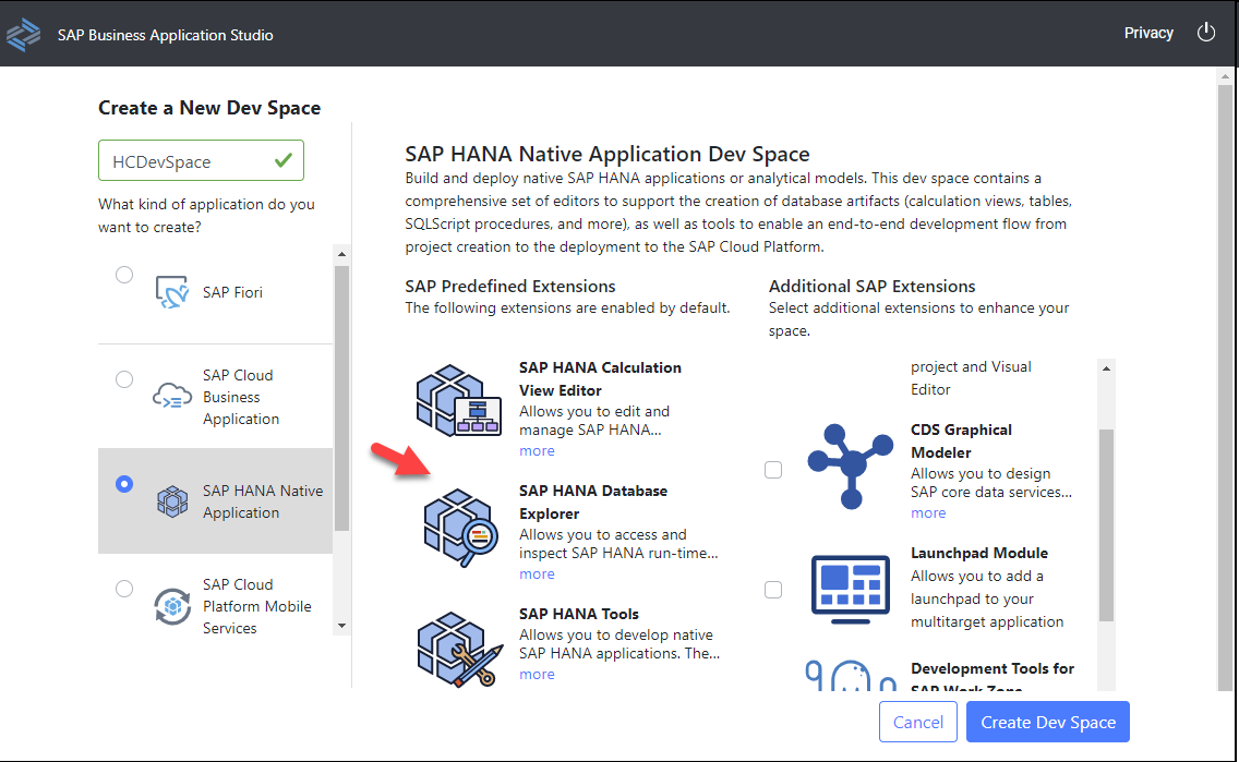(5) 从 SAP Web IDE for SAP HANA 启用扩展