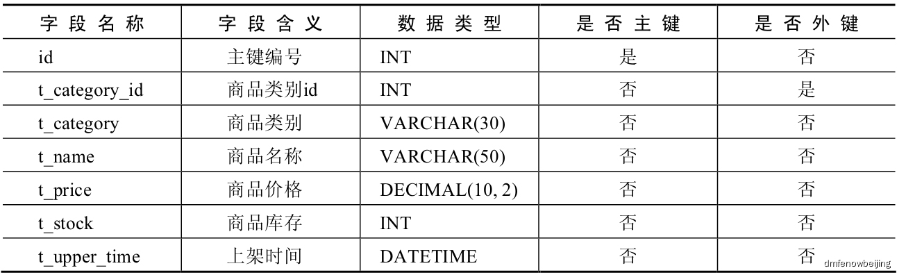 名称为t_goods_category1的商品类别数据表的表结构如表8-1所示。