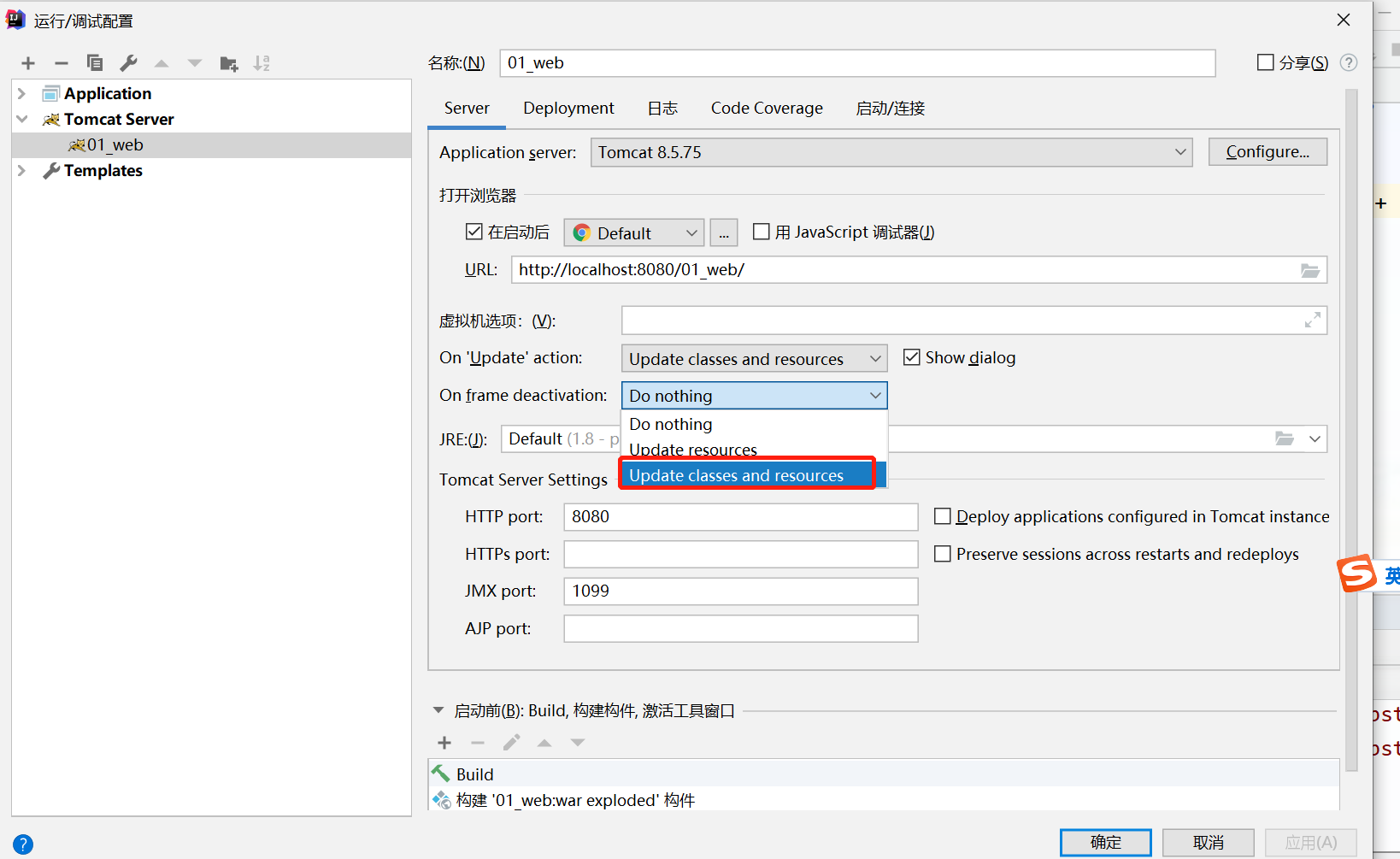 2、确认你的tomcat实例中有你要部署运行得web工程模块