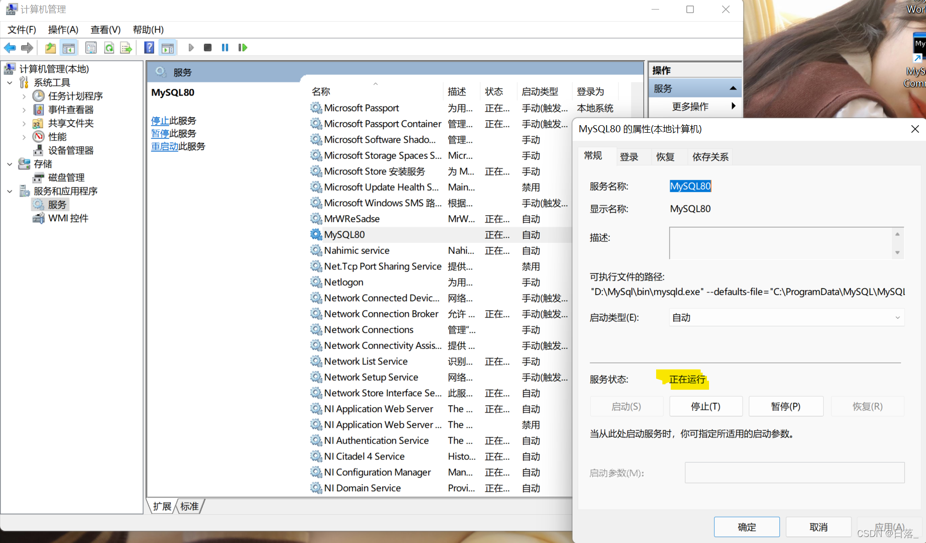 start和stop后面的服务名应与之前配置环境变量时指定的服务名一致。
