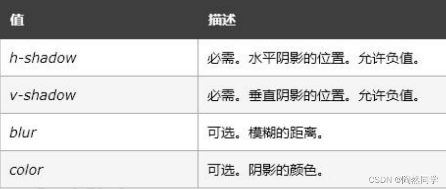 格式: box-shadow : X 轴偏移 Y 轴偏移 模糊程度 阴影颜色 ;