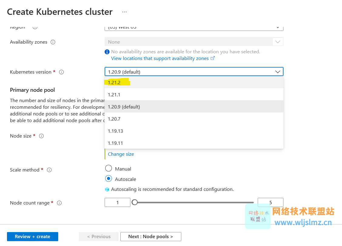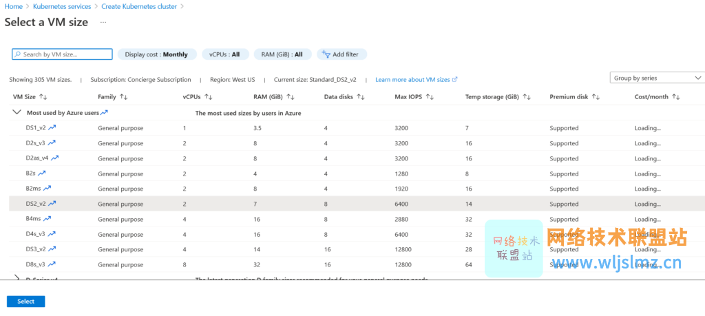 第 7 步:创建一个 Kubernetes 集群 选择一个 vm 大小