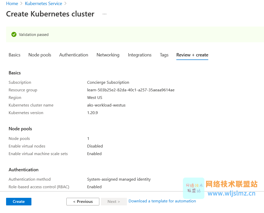 第 9 步:创建 Kubernetes 集群 - 验证通过