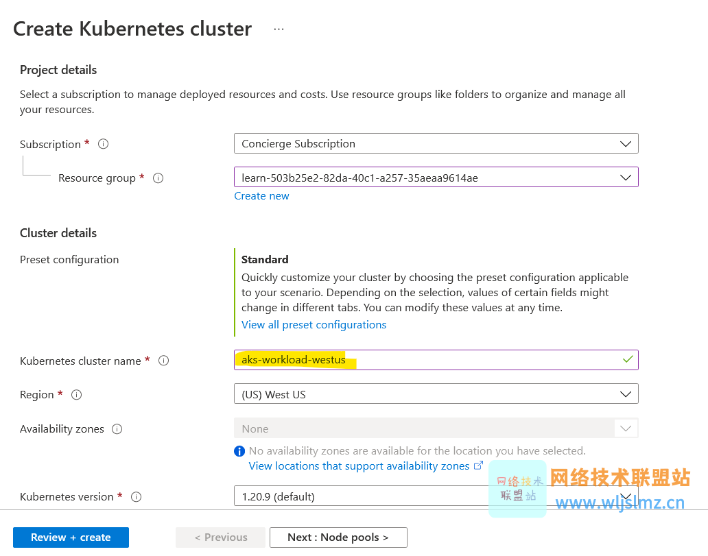 第 1 步:在 azure 上创建一个 azure kubernetes 服务资源