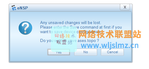 退出 eNSP时,当询问是否保存未保存的更改时,请选择是。