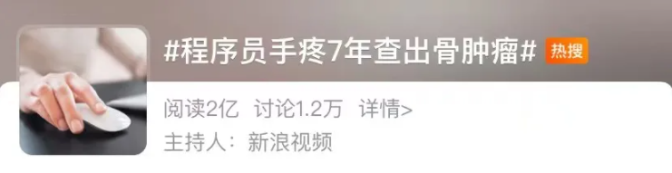 近日,又一条关于程序员的新闻冲上热搜:“#程序员手疼7年查出骨肿瘤#”