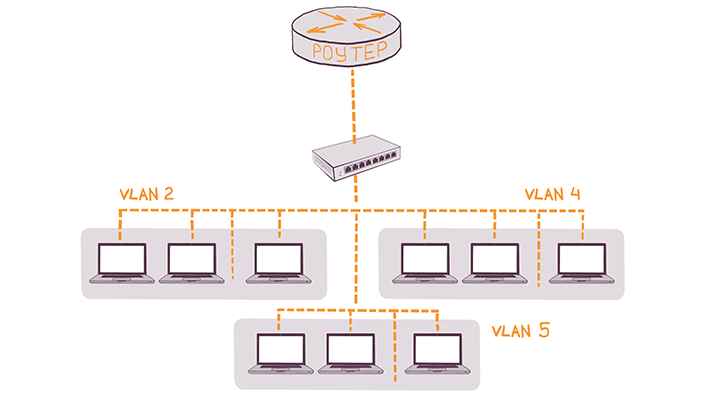 对于这种情况,要创建 VLAN(虚拟局域网),它的工作原理非常简单:将带有 VLAN 标记的附加标头添加到帧中,并确定该帧属于哪个网络。