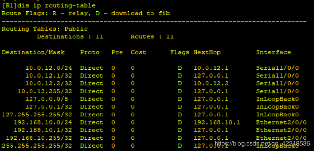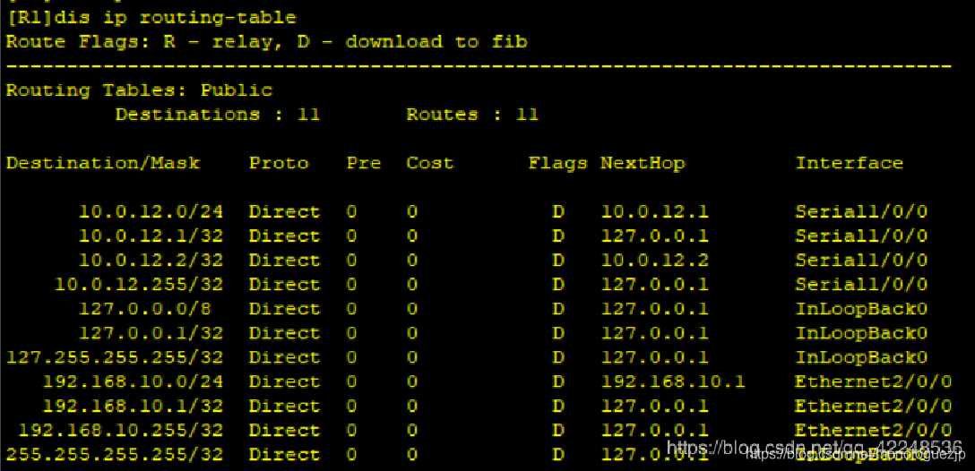 值得注意的是,在使用CIDR或者VLSM的网络中,路由表中的子网掩码通常会用网络前缀来表示(写成:10.0.12.0/24的形式)