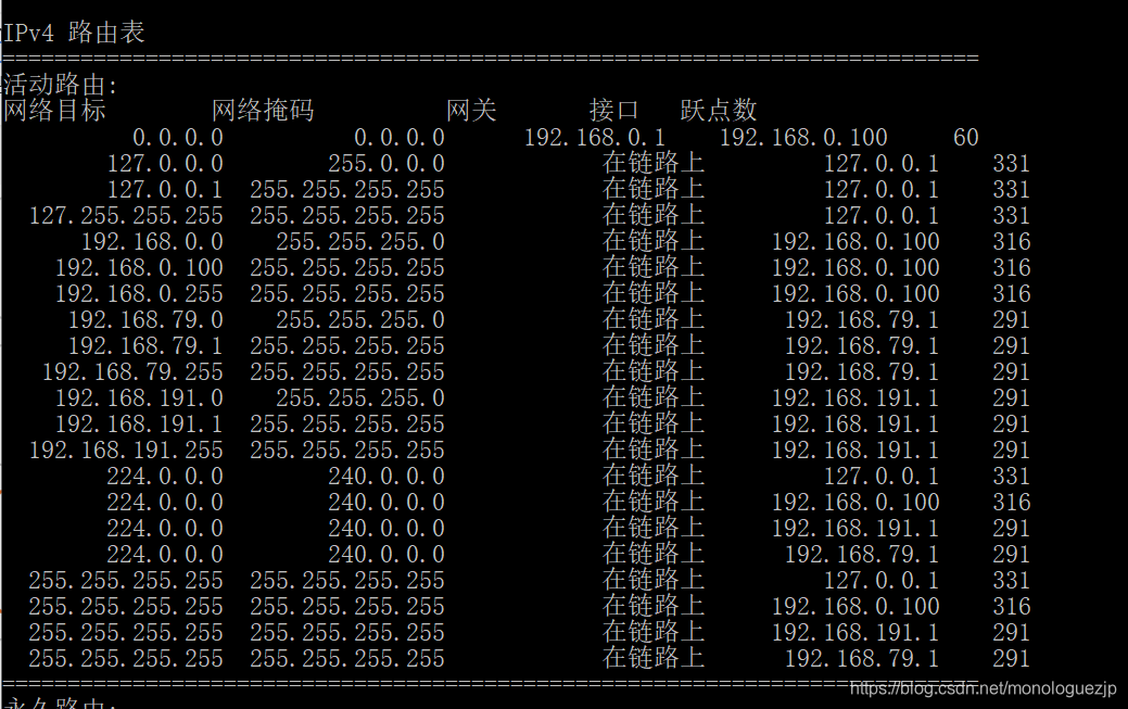 由上述两张图我们可以看出,不同的厂商、不同的操作系统下,路由表中包含的内容会有些许的差异。 但一些基本的内容却都是一致的: