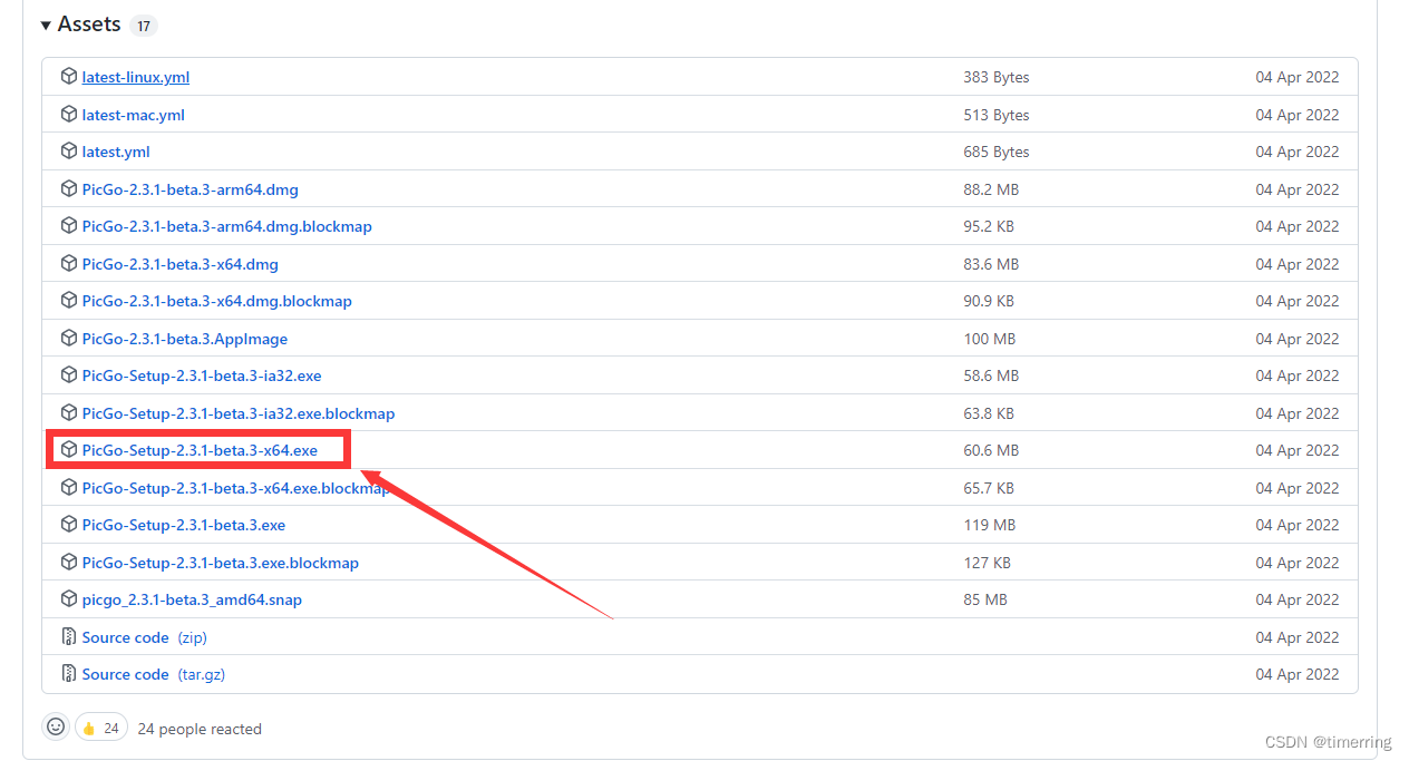 1.下载picgo,建议从GitHub的官方仓库下载,。选择较新版本即可。