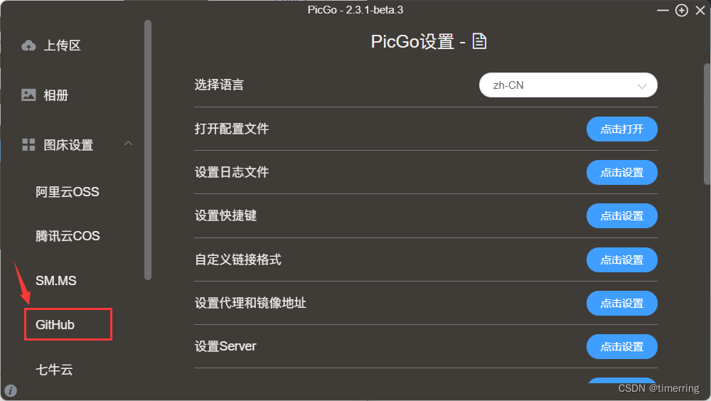 3.安装软件时建议记住安装路径。点击图床设置中的GitHub。