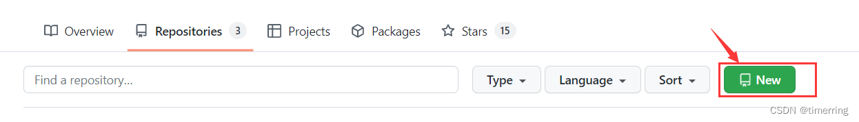 1.首先,在GitHub中新建仓库,点击New