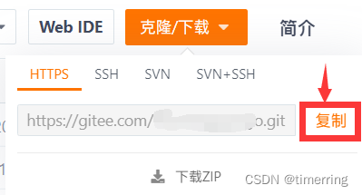 2.回到之前gitee的图床仓库中,在克隆/下载中选择复制HTTPS中的字符串。
