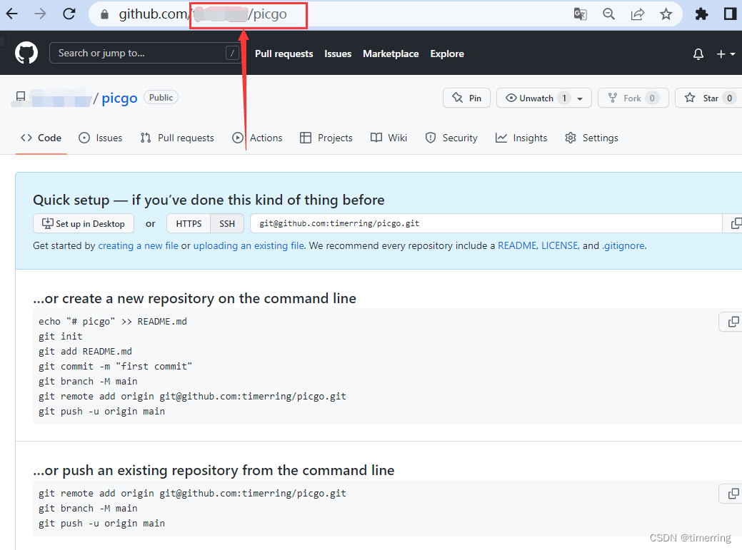 4.进行下一步之前,先回到GitHub仓库,找到网址github.com/用户名/仓库名 复制后面的“用户名/仓库名”,如下所示。