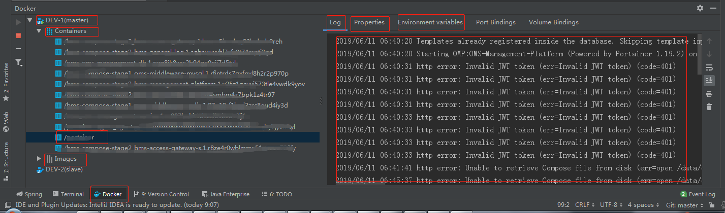 在IDEA中,如下图操作,即可直连docker服务器,可查看docker环境上所有镜像、容器,并支持重启、删除等一系列操作,更多功能使用时再细细挖掘吧。