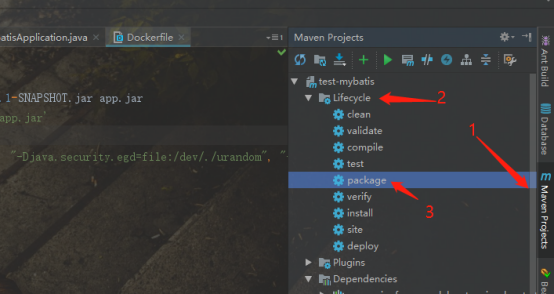 在IDEA的右边找到Maven Projects,找到Lifecycle,双击package打包,第一次打包比较慢,需要耐心等等。
