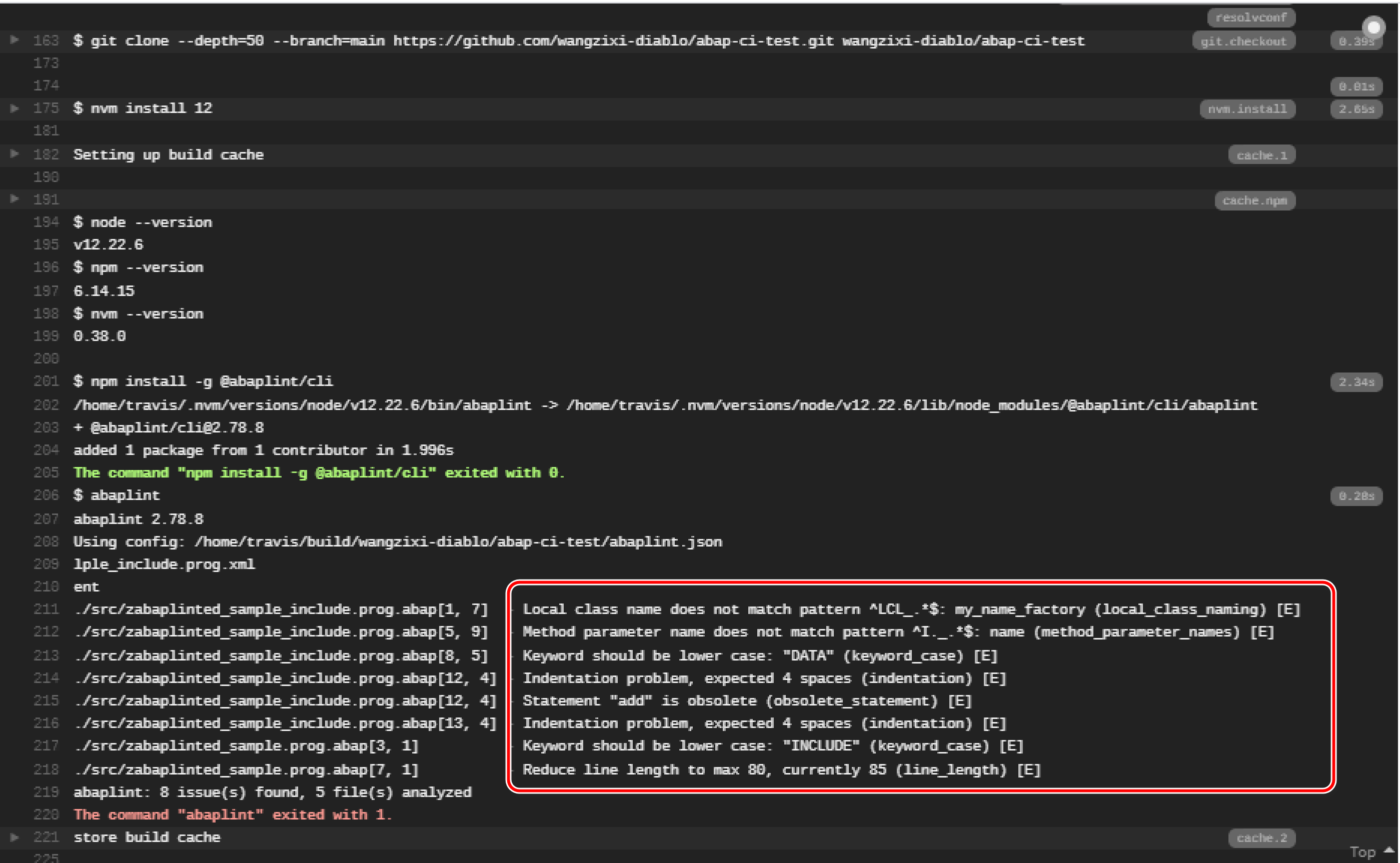 老老实实按照 abaplint 输出的结果把 ABAP 代码里所有违反规则之处修复,重新提交,这次 Github 工作流和 Travis 里的构建日志终于都显示绿灯了。