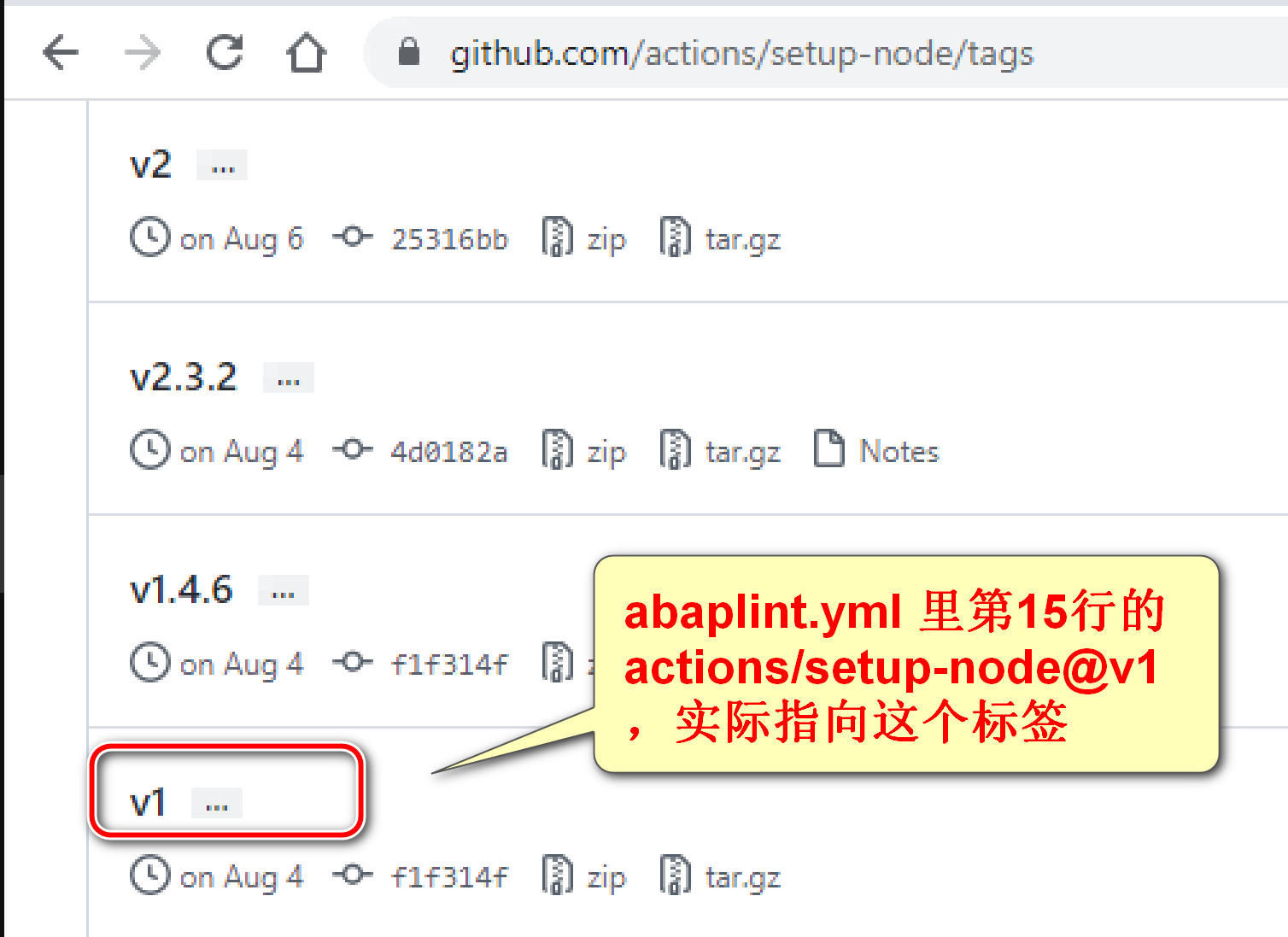 第15行的 uses 指令,意思是重用 Github 自带的名为 setup-node action,完成 Node.js 运行环境的准备。