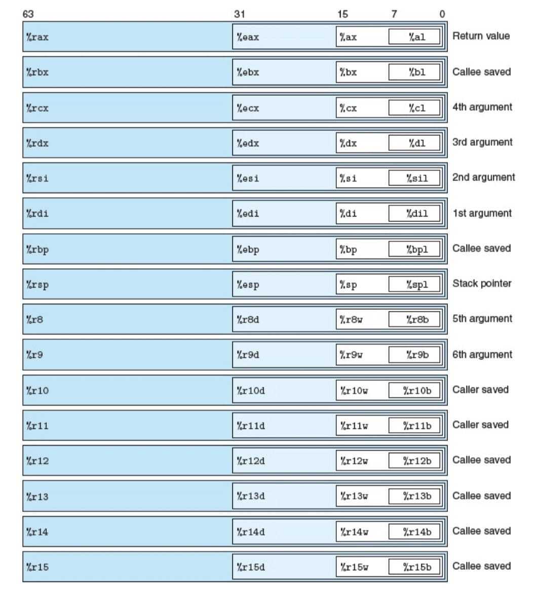 一个x86-64的中央处理器单元(CPU)包含一组16个存储64位值的通用目的寄存器。这些寄存器用来存储整数数据和指针。