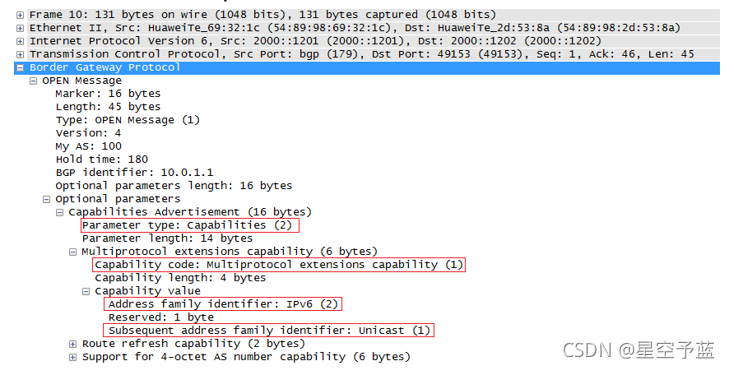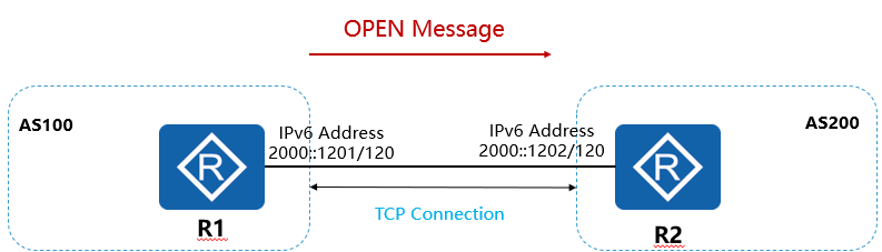 当两台BGP对等体之间需要传输IPv6地址族的地址时,需要在OPEN Message 中进行扩展能力的协商