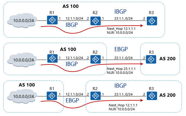 优选从EBGP邻居学来的路由(EBGP路由优先级高于IBGP路由)