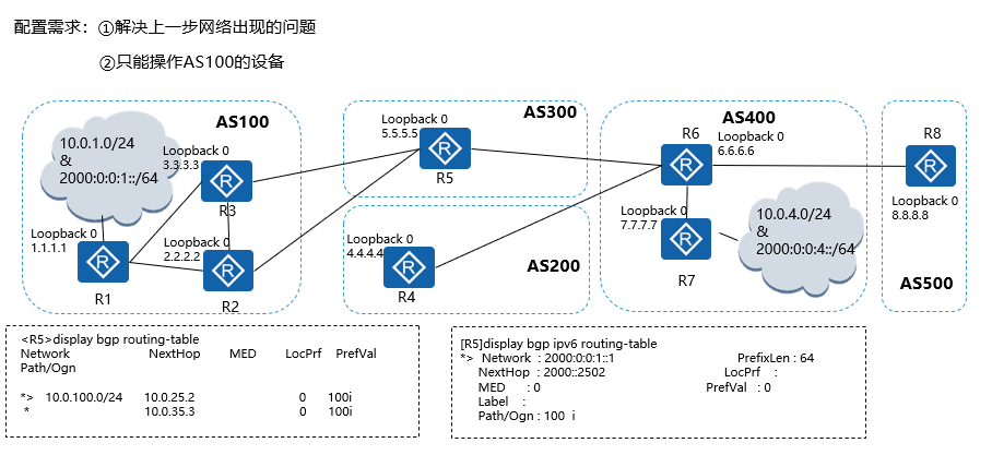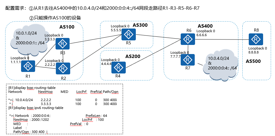 默认只能判断来自同一AS内的流量的MED值(要求AS-path最左端的AS号保持一致)