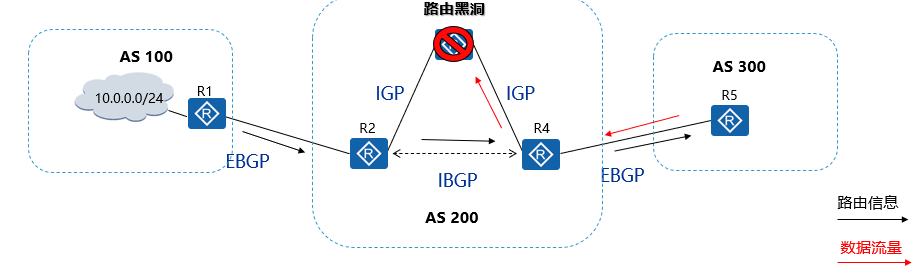 IBGP与IGP的同步:在IBGP路由加入路由表并发布给EBGP对等体之前,会先检查IGP路由表。只有在IGP也知道这条IBGP路由时,它才会被加入到路由表,并发布给EBGP对等体