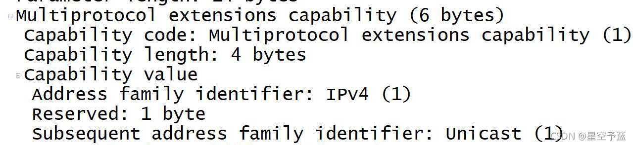 当传递IPv6路由时:AFI=2 ,SAFI=1(Unicast) ,SAFI=2(Multicast