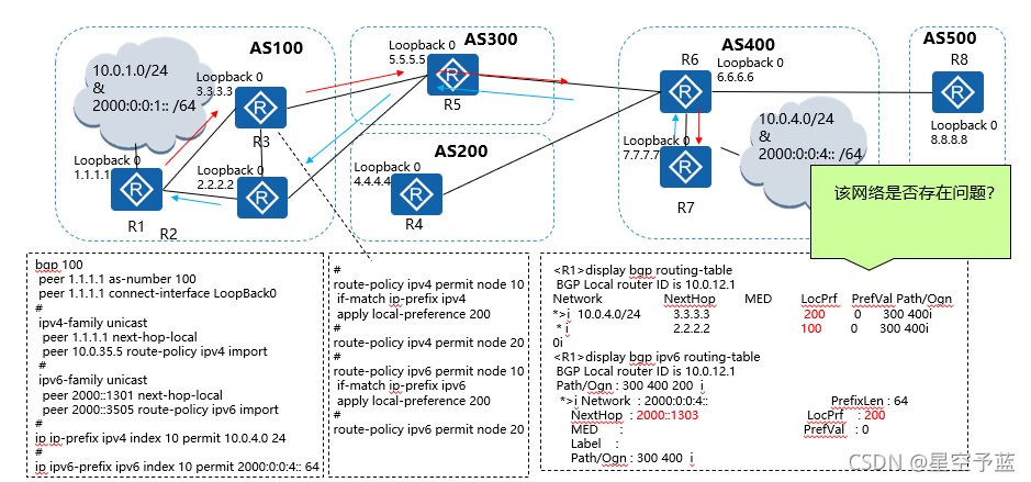 BGP邻居关系正常的情况下,但是BGP路由表没有该表项: