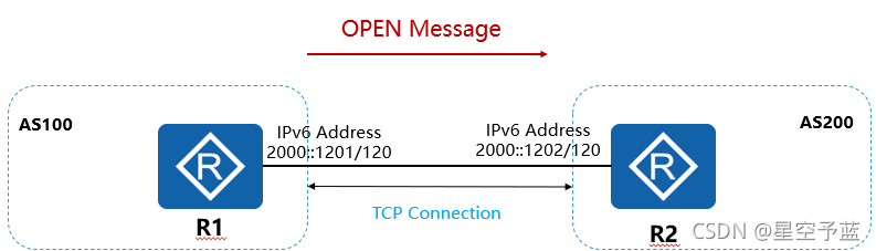 如果TCP连接成功,那么BGP向对等体发送Open报文,并转至OpenSent状态