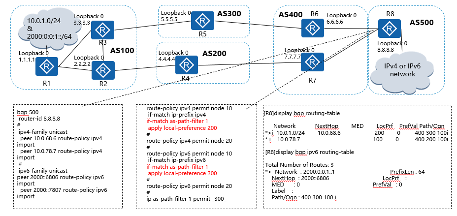 配置:ip as-path-filter { as-path-filter-number | as-path-filter-name } { deny | permit } regular-expression 创建AS路径过滤器