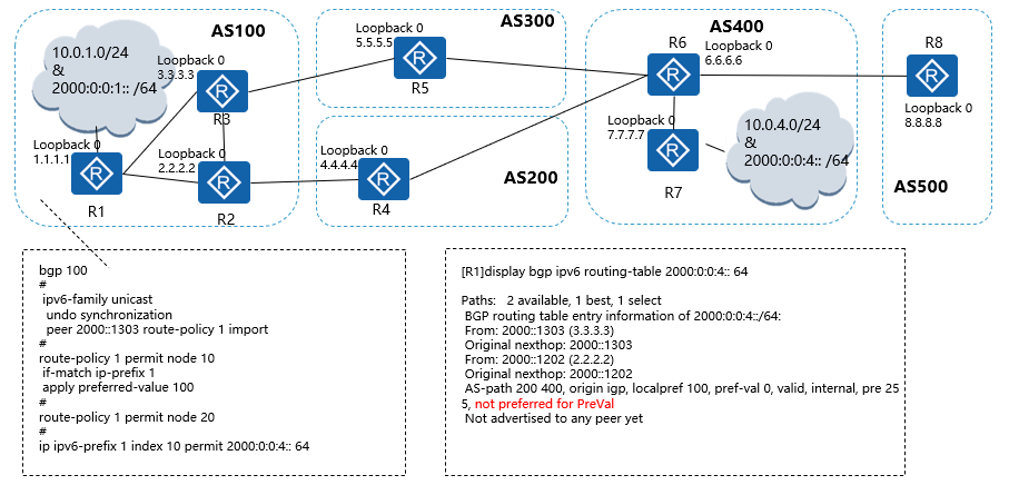 配置方式:1.BGP视图下:peer 1.1.1.1 preferred-value 100