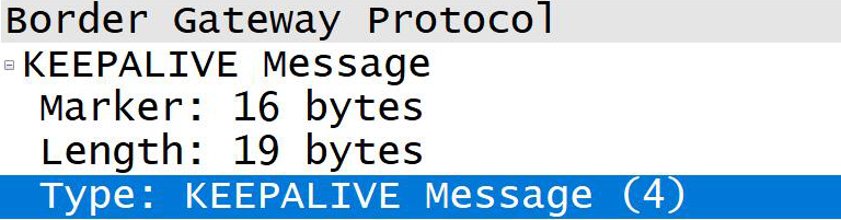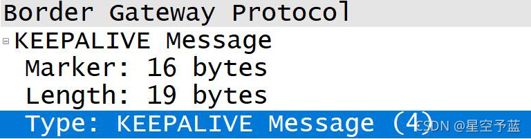 3.Keepalive报文:维护BGP邻居关系,默认周期性60s发送一次