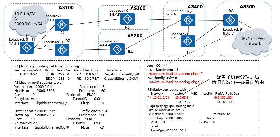 BGP选路规则:当到达同一目的地存在多条路由时,BGP依照如下策略顺序进行路由选择(第2-8条:PLLAOMEN)